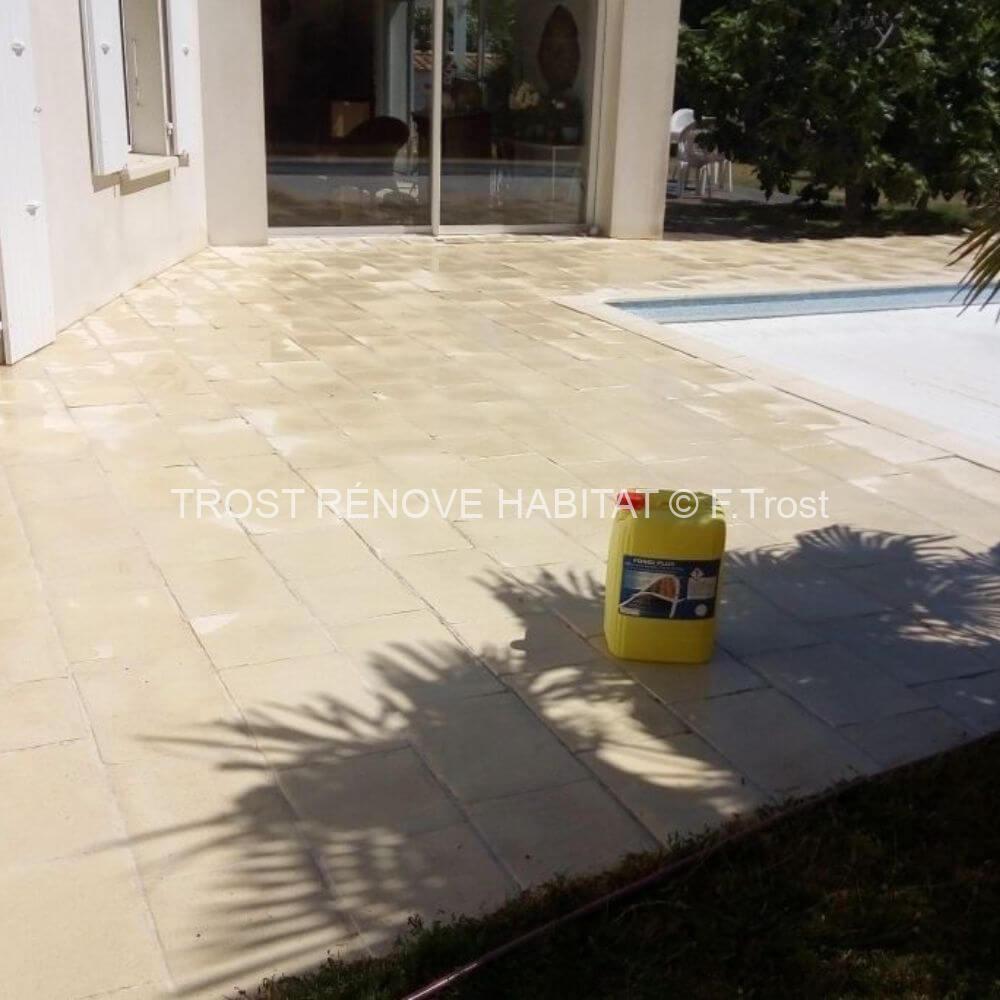 Nettoyage d’une terrasse et margelles autour d’une piscine