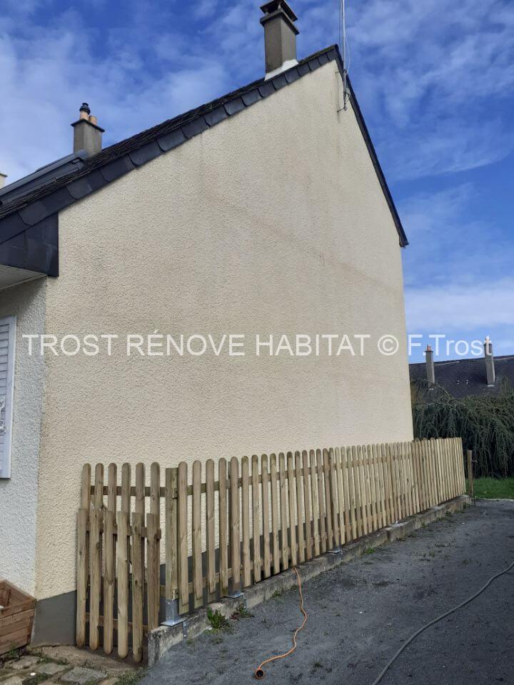 Nous avons réalisé le nettoyage d’une façade à Bouchemaine. Après l’application d’un anti-mousse désincrustant pour éliminer les traces de salissures et de végétation, un rinçage en basse pression a été effectué pour préserver l’intégrité du support. Résultat : une façade propre, saine et rafraîchie, prête à affronter le temps sans encombre. Une intervention efficace pour embellir et protéger votre habitation !
