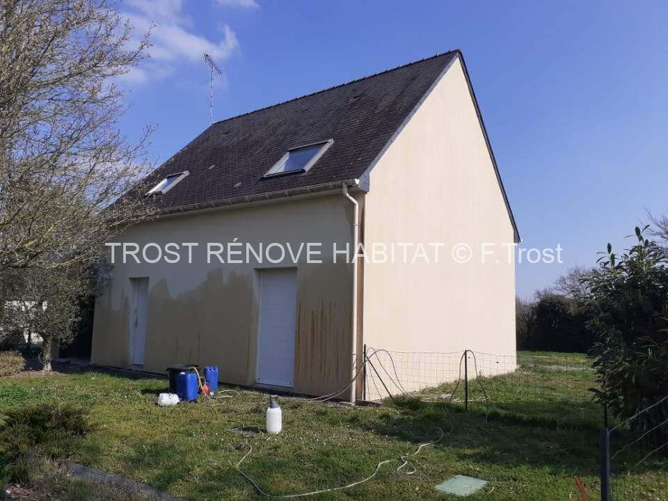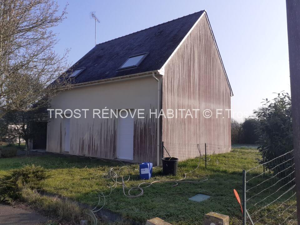 Sur ce chantier, nous avons réalisé le nettoyage d’une façade et d’un pignon avec des traces rouges à Segré. Nous avons appliqué un désincrustant afin d’éliminer les traces rouges.