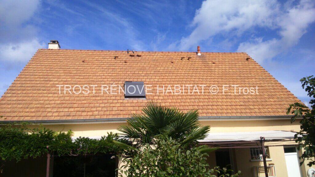 Sur ce chantier, nous avons réalisé le démoussage et nettoyage d’une toiture en tuiles à Cholet.