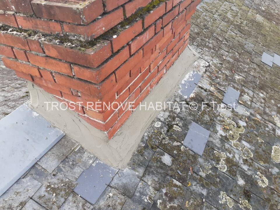 Nous sommes intervenus à Trélazé pour rechercher une infiltration sur une toiture en ardoises naturelles. Après inspection, nous avons identifié des ardoises cassées, que nous avons remplacées pour rétablir l’étanchéité. Par ailleurs, nous avons repris le solin de cheminée, afin de garantir une protection optimale contre les infiltrations d’eau et préserver la toiture.