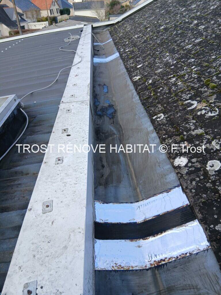 Au fil du temps, les feuilles, mousses et débris s’accumulent, provoquant des obstructions et parfois des infiltrations. C’est exactement ce que nous avons constaté sur ce chantier à Angers. Après un diagnostic précis, nous avons procédé au dégagement des conduits, au retrait des résidus et à la remise en état des sections abîmées des gouttières et chéneaux.
