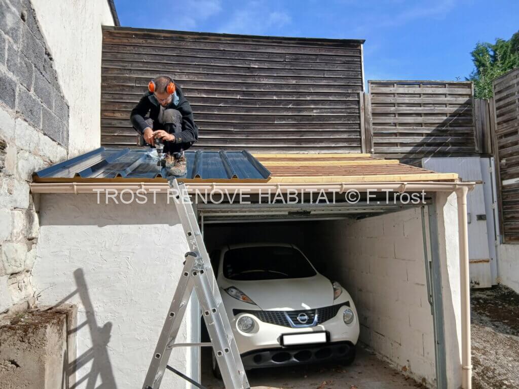 Nous venons de terminer le remplacement d’une toiture en ardoise par une couverture en bac acier pour un garage à Angers. La toiture précédente, en ardoises naturelles, présentait plusieurs malfaçons qui provoquaient des infiltrations lors des fortes pluies. Grâce à cette rénovation, le garage bénéficie désormais d’une couverture durable, légère et parfaitement étanche. Ces travaux de couverture réalisés sur Angers offrent une solution efficace pour protéger votre bâtiment tout en modernisant son apparence.